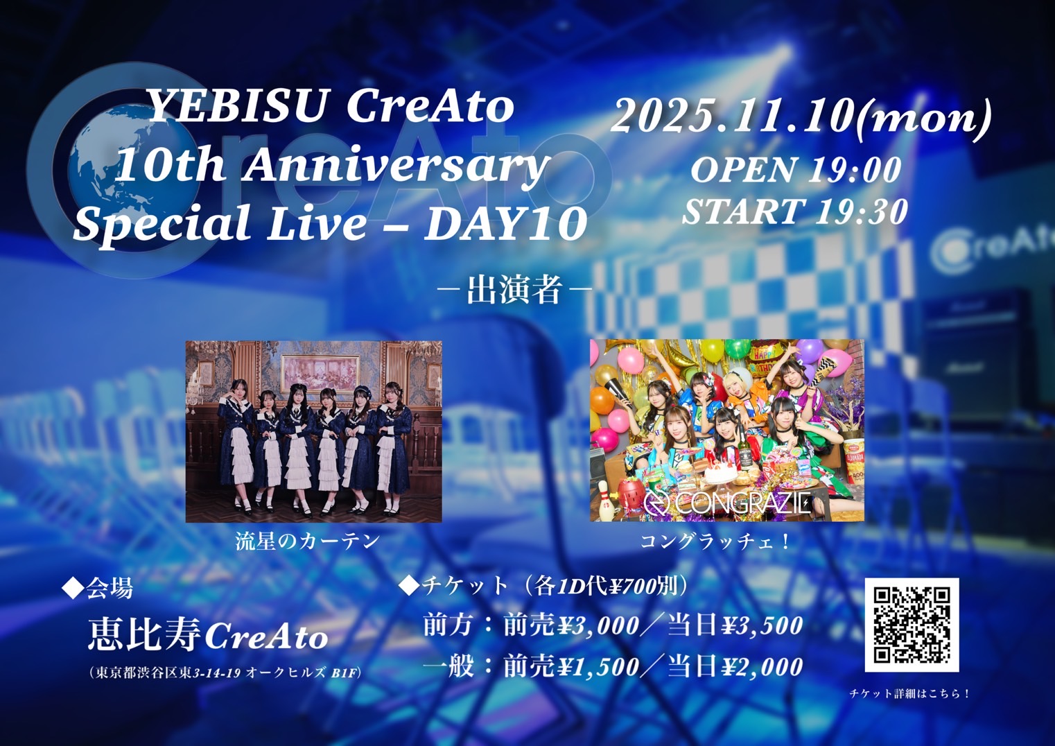 前方チケット : ¥3,000 / 一般チケット : ¥1,500 / +drink(¥700~)