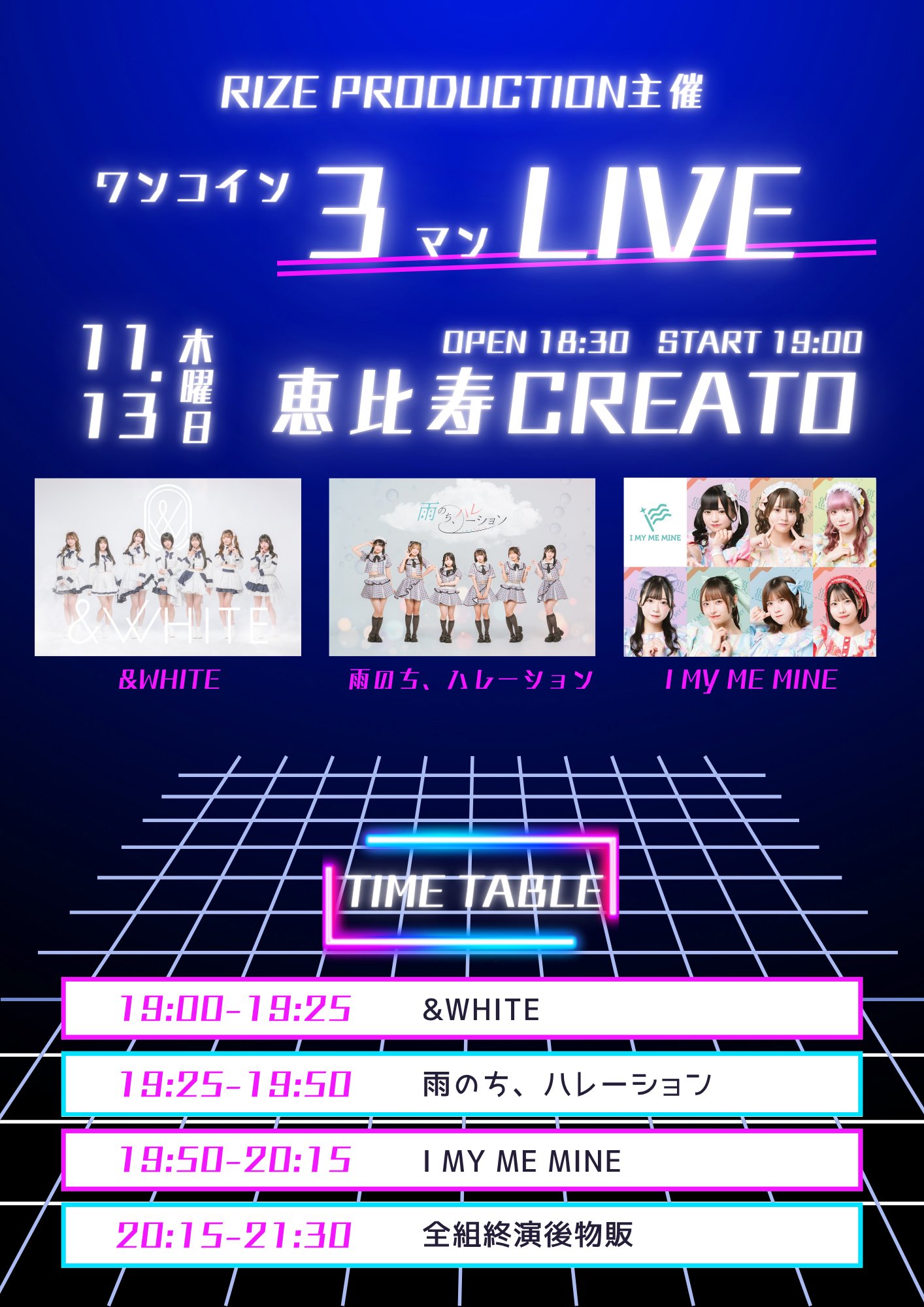 RIZE PRODUCTION主催 ワンコイン3マンライブ