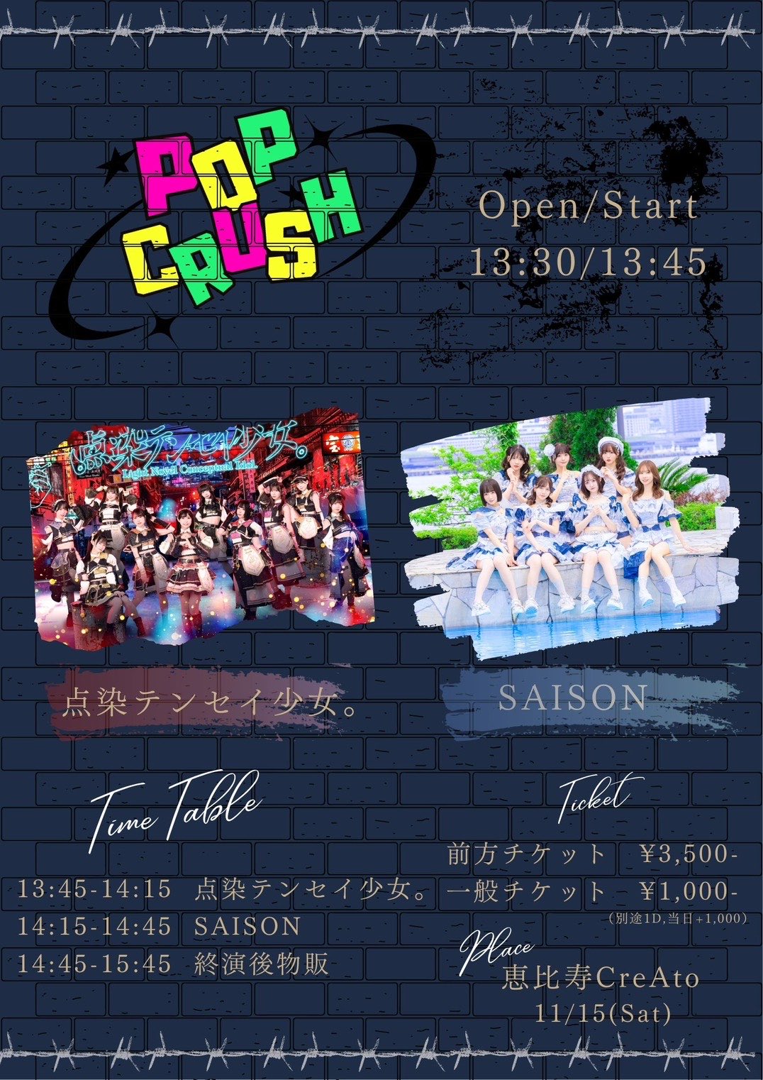 前方チケット : ¥3,500 / 一般チケット : ¥1,000 / +drink (¥700)