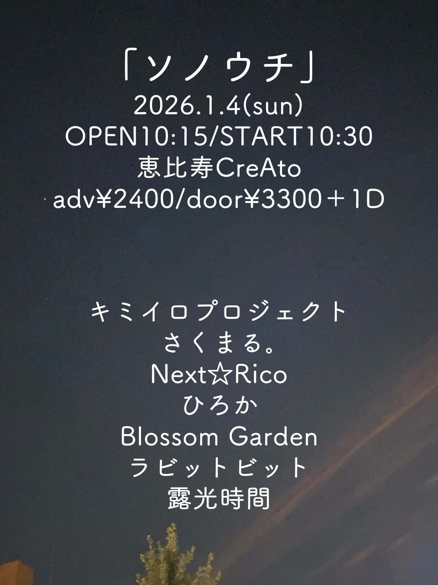 キミイロプロジェクト / さくまる。 / Next☆Rico / ひろか / Blossom Garden / ラビットビット / 露光時間