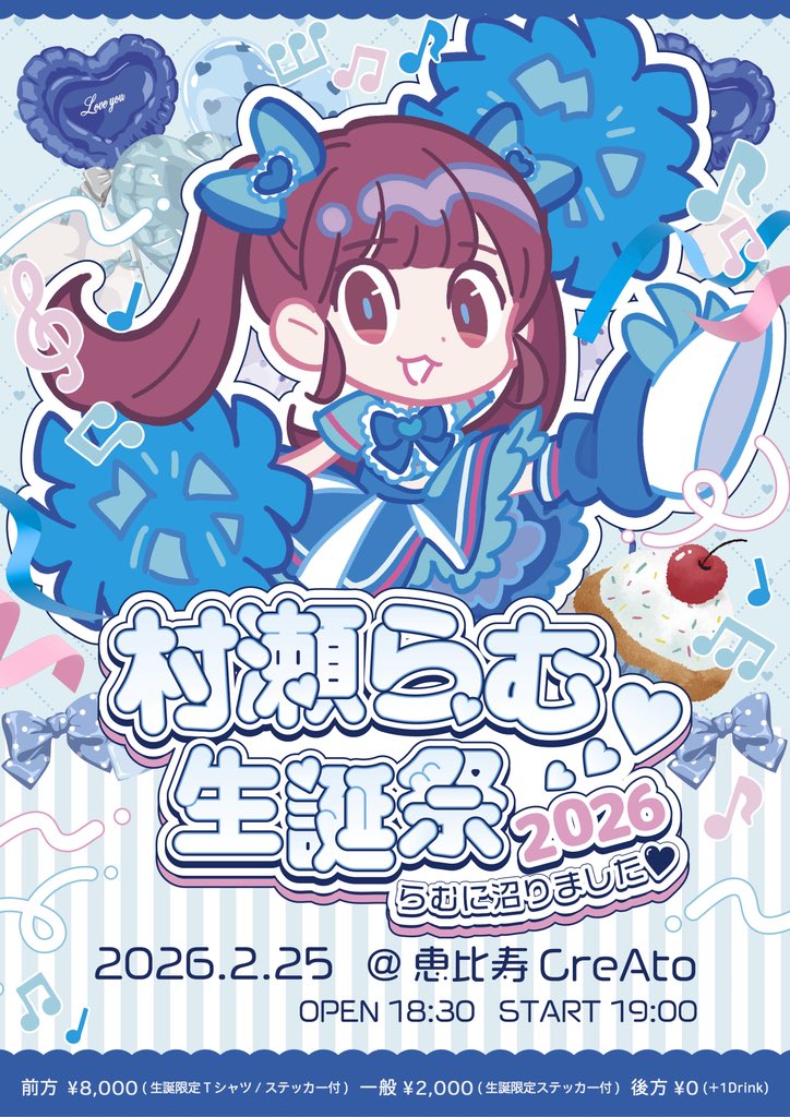 前方 : ¥8,000 / 一般 : ¥2,000 / 後方 : ¥0 当日各+¥1,000 / +drink(¥700~)