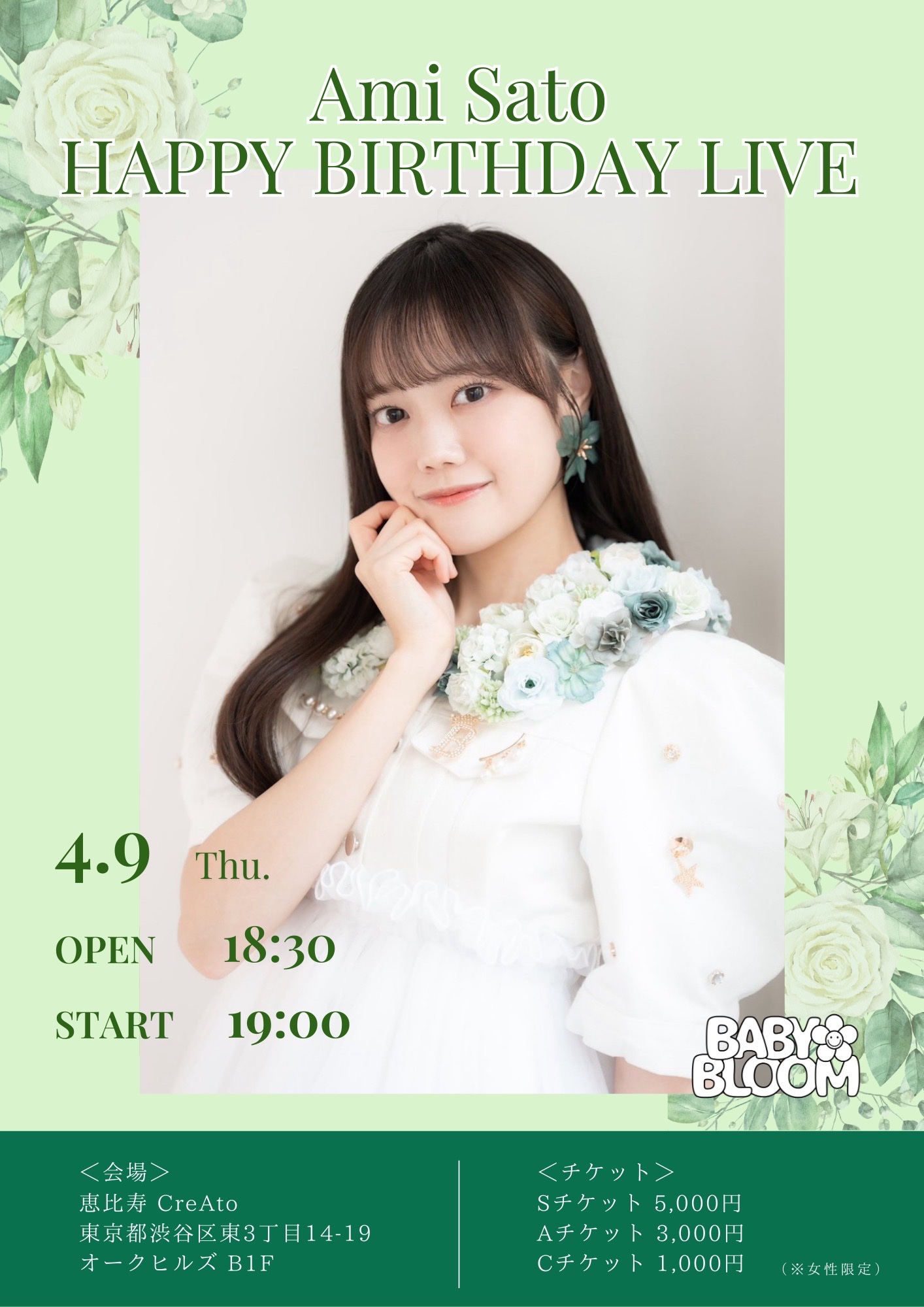 Sチケット : 5,000円 / Aチケット : 3,000円 Cチケット : 1,000円 / +drink(700円~)