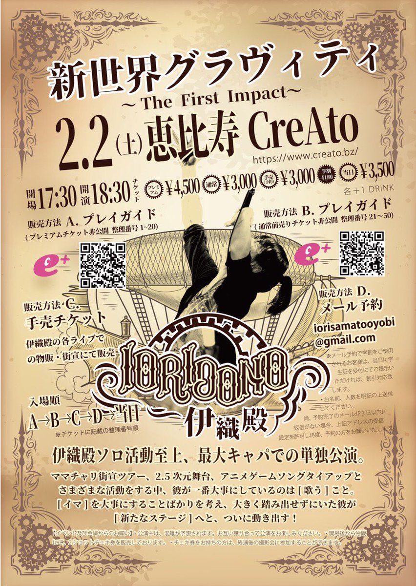 前売: 3000円 / プレミアムチケット: 4500円 / + drink(500円~) 【手売り・メール予約】前売: 3000円 / 学割: 1000円 / + drink(500円~) 【当日券】3500円 / + drink(500円~)