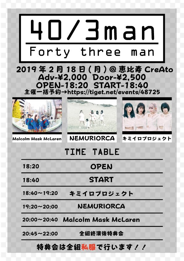 前売: 2000円 / 当日: 2500円 / + drink(500円~)